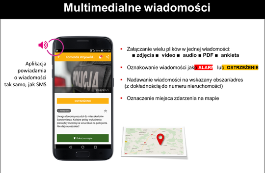 Podstawową zaletą aplikacji jest umożliwienie mieszkańcowi swobodny wybór serwisów informacyjnych od poszczególnych nadawców. Dzięki temu użytkownik otrzymuje tylko interesujące go informacje, bez zaśmiecania niechcianymi treściami. Tym bardziej dla Policji jest cenne, iż może powiadamiać skutecznie, bo informacje trafią tylko do tych osób, które wyraziły na to zgodę.