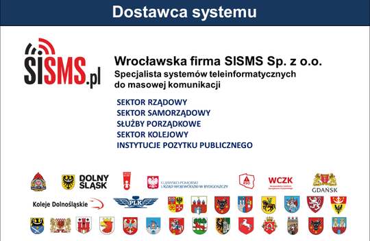 Dostawcą systemu jest wrocławska spółka SISMS, która specjalizuje się w informatycznych usługach dla instytucji samorządowych i administracyjnych. SISMS Sp. z o. o. od 2009 dostarcza bezpieczne systemy do masowego zarządzania informacją w sytuacjach kryzysowych.