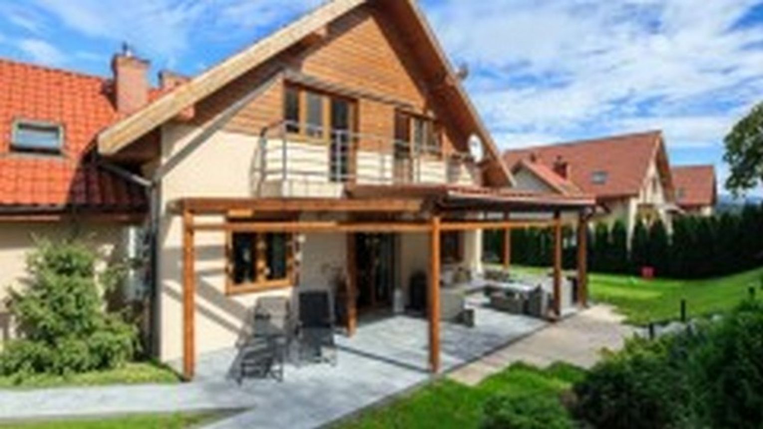 Większość domów wybudowanych w stylu nowoczesnym posiada minimalistyczną, kwadratową bądź prostokątną bryłę i duże przeszklone powierzchnie w obrębie salonu. Elewacja najczęściej jest wykańczana białym tynkiem lub malowana na odcienie szarości. Strefa wejścia do budynku często ozdobiona jest okładziną drewnianą lub drewnopodobną, a niekiedy blachą kortenowską. Prosty, wręcz ascetyczny wygląd budynku sprawia, że jego otoczenie powinno mieć podobny charakter. Kostki i płyty betonowe należy dobrać nie tylko pod względem estetycznym, ale również użytkowym, w oparciu o bardzo prostą zasadę – im grubszy prefabrykat betonowy, tym szersze zastosowanie. Im cieńszy, tym węższe. Płyty o grubości mniejszej niż 6 cm zastosujemy jedynie na tarasach i alejkach ogrodowych, zaś równych lub grubszych – w praktyce na wszystkich innych nawierzchniach w otoczeniu domu, przy czym przeznaczenie danego produktu trzeba zawsze sprawdzić w tzw. Deklaracji Właściwości Użytkowych produktu. Przegląd dostępnych na rynku rozwiązań najlepiej rozpocząć od tarasu, czyli zwykle najważniejszego miejsca spotkań w ciepłe dni.