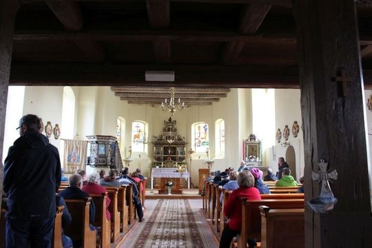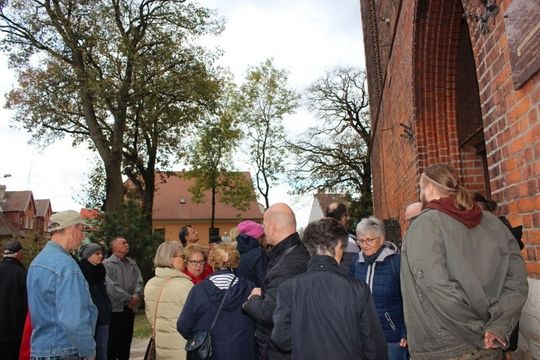 Następnie udaliśmy się do Sadlna i Kłodkowa. Pierwsza wzmianka o Sadlnie mówi, iż księżna Anastazja przekazuje wieś w zarząd opatowi norbertanów jako uposażenie dla norbertanek. Pierwsza wzmianka o kościele pochodzi z 1730 roku. Kościół jest prawdopodobnie najstarszym w gminie kościołem gotyckim. Na uwagę zasługuje również Kłodkowo ( pierwsza wzmianka 1224 rok - własność norbertanek). W 1437 roku wieś jest własnością miasta Trzebiatów, a pierwsza wzmianka o kościele przypada na rok 1492. Według Lemckego kościół odnowiono w 1908 roku. Zachowała się m.in. chrzcielnica ( 1617) - fundacja Georga Wildehefta oraz jego zmarłej żony, pochowanej w tym kościele.