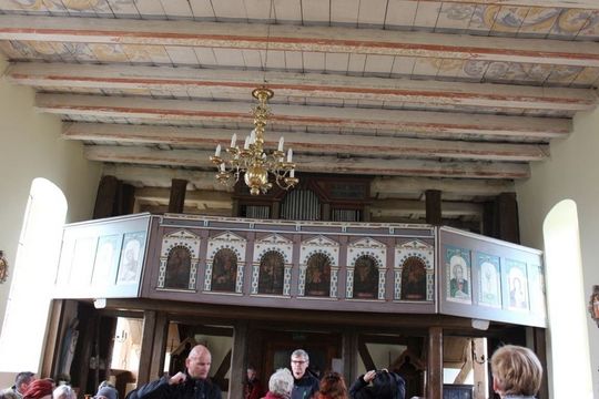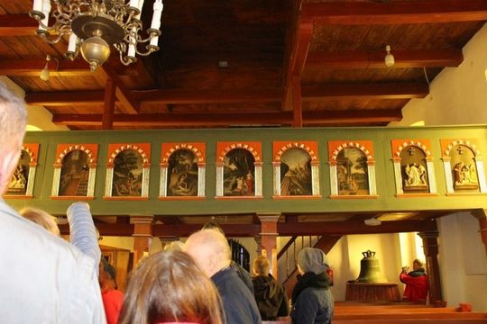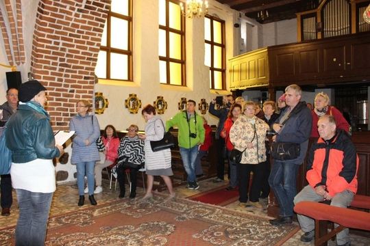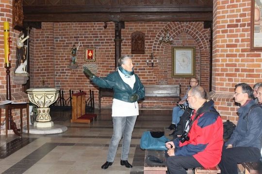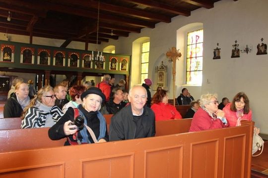 Drugi dzień seminarium przebiegał pod hasłem „TRZEBIATÓW NA SKRZYŻOWANIU SZLAKÓW: GRYFITÓW I GOTYKU”. Zwrócono uwagę na omawiane dzień wcześniej mury obronne oraz wyposażenia kościoła Mariackiego. Następnie udaliśmy się do kościołów gminy Trzebiatów na szlaku: gotyku, norbertańskim i książęcym. Odwiedziliśmy późnogotycki Kościół w Trzebuszu, z drewnianą wieżą z 1685 roku. Wyposażenie kościoła to m.in. empora z lat 40-50 XVII ze scenami z życia Chrystusa i kazaniem pastora. Kolejny był kościół w Robach. Pierwsza wzmianka o Robach pochodzi z 1330 roku ( własność norbertanów), zaś pierwsza wzmianka o kościele z 1594 r. Wyposażenie datuje się na 1654 r. – fundacja księżnej Zofii. Zabytkowa empora z pierwszej ćwierci XVII wieku przedstawia sceny starotestamentowe: Księgę Wyjścia i Księgę Sędziów z przesłaniem pomoc i opieka boża w trudnych sytuacjach, tym którzy wierzą i przestrzegają prawa.