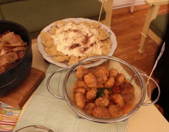 Objazd naukowy zakończyliśmy poczęstunkiem w zagrodzie ryglowej Roberta Szymanowskiego, gdzie mogliśmy skosztować smakowitych blin, miodu, zupy dyniowej i pysznego wypiekanego w tradycyjnym piecu chleba.