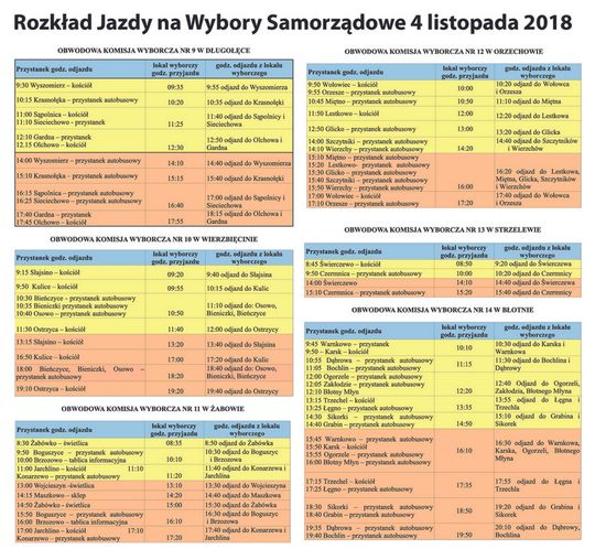 Rozkład jazdy na Wybory Samorządowe 4 listopada 2018