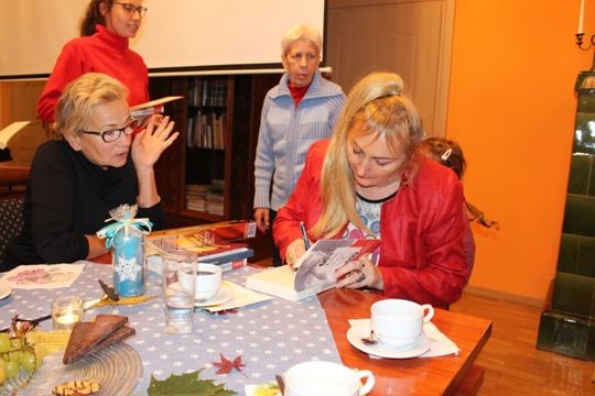 Historia opisywana w książkach Iwony Kienzler to historia widziana oczyma kobiet. Autorka wydała kilkadziesiąt biografii, m.in. „Mąż wszystkich żon : Stanisław August” (2011: debiut), „Caryca Katarzyna i król Stanisław”, „Marysieńka i Sobieski. Wielka miłość”, „Kobiety w życiu Marszałka Piłsudskiego…” i ostatnio „Kobiety niepodległości : bohaterki, żony, powiernice”. I to właśnie ta książka została zaprezentowana na spotkaniu. Pani Iwona Kienzler przybliżyła postacie pozostające w cieniu sławnych mężczyzn. Kim były kobiety niepodległości? Żonami i powiernicami polityków? Działaczkami społecznymi? Prekursorkami feminizmu? A może celebrytkami II RP? Pisarka opowiedziała o Marii Wojciechowskiej, Helenie Paderewskiej, Michalinie Mościckiej, kobietach Marszałka: Leonardzie Lewandowskiej, Marii Piłsudskiej, Aleksandrze Piłsudskiej, Eugenii Lewickiej a także Jadwidze Beckowej i Jadwidze Sosnkowskiej. Pasjonujące było również ich życie prywatne. Z pewnością Kobiety Niepodległości mogą być inspiracją dla współczesnych Polek. Mimo upływu wielu dekad ich losy nadal fascynują. Zachęcamy do sięgnięcia po książki Iwony Kienzler ponieważ są na najwyższym poziomie merytorycznym, zawierają informacje oparte na licznych źródłach historycznych, a przy tym są niezwykle interesujące i wciągające.