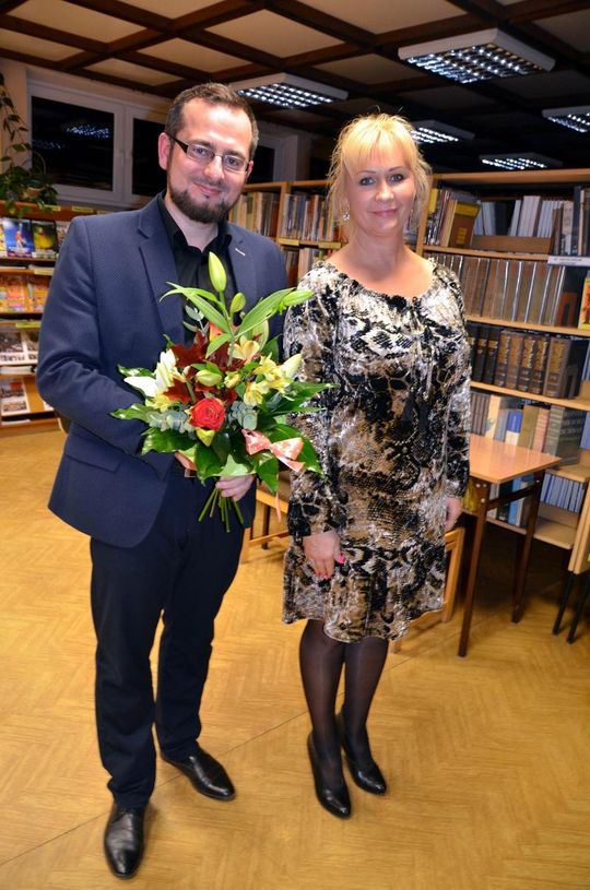 Na zakończenie pani Dyrektor MBP wręczyła na ręce Pana Piotra symboliczny bukiet kwiatów, natomiast zebrani goście mogli napić się gorącej kawy, herbaty oraz poczęstować się przygotowanymi słodkościami.