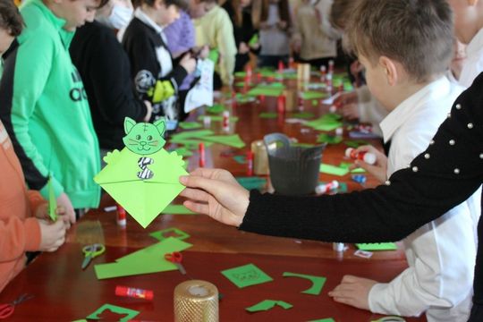 Gośćmi spotkania były klasy V ze Szkoły Podstawowej nr 2 w Trzebiatowie wraz z opiekunami. W miłej atmosferze toczyły się rozmowy o tolerancji, miłości do zwierząt i przyrody, szacunku, kulturze w szerokim tego słowa znaczeniu oraz sytuacji jaka dziś dotyka świat czyli wojna na Ukrainie. Na zakończenie uczniowie wykonali zakładki do książki, będące pamiątką ze spotkania.