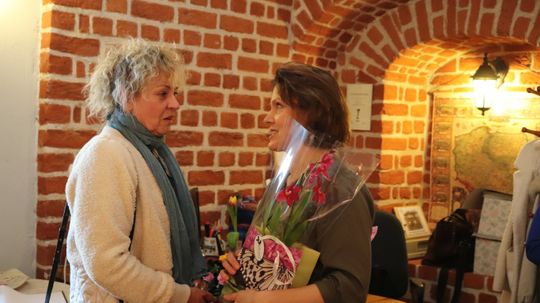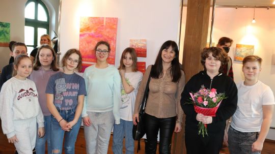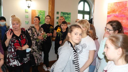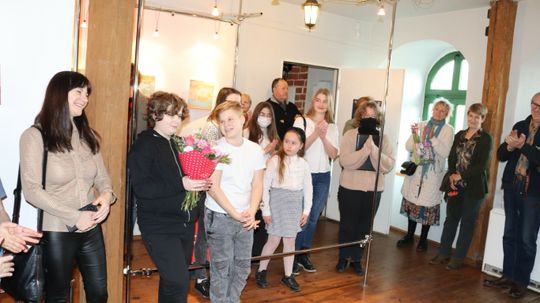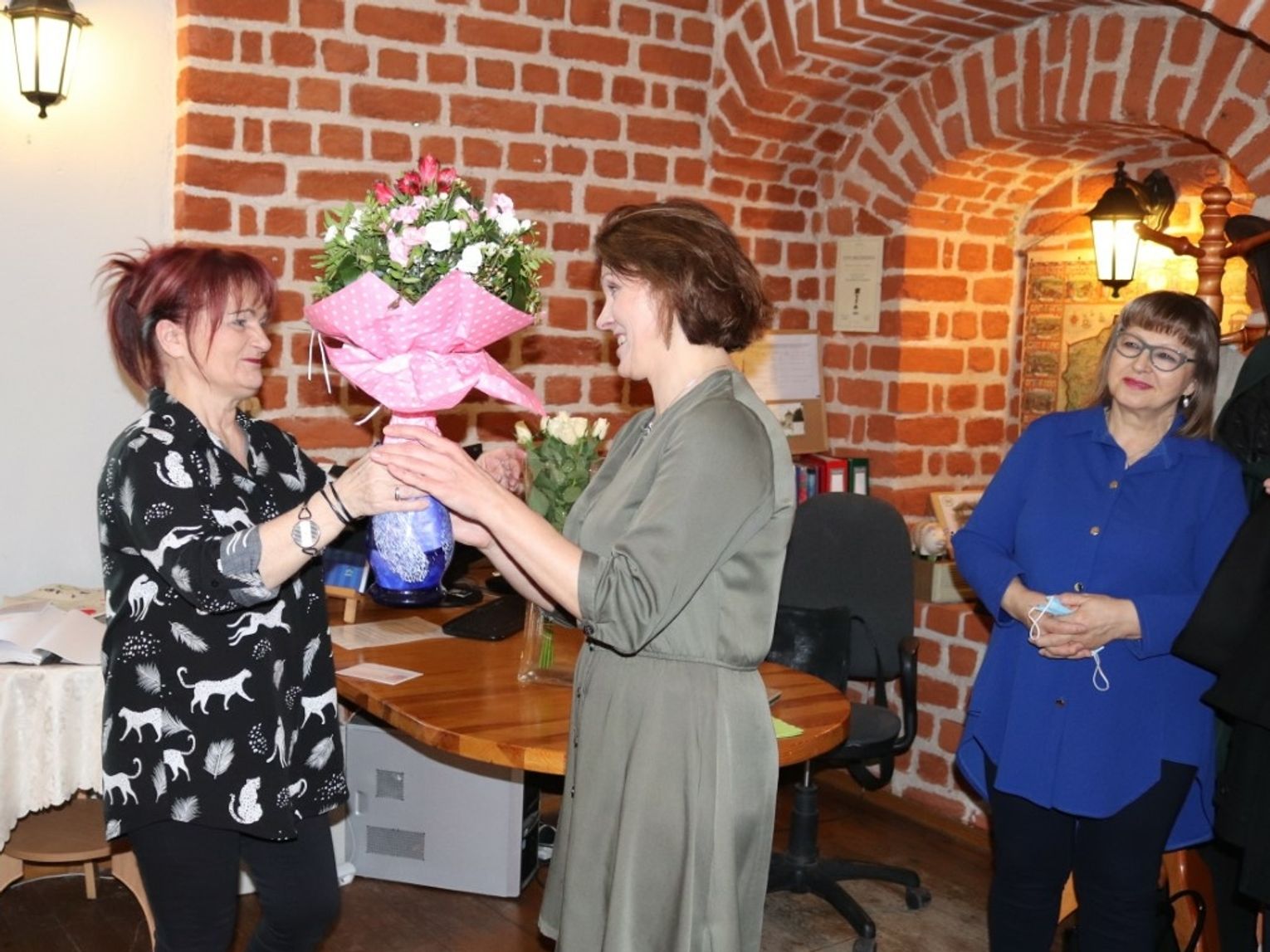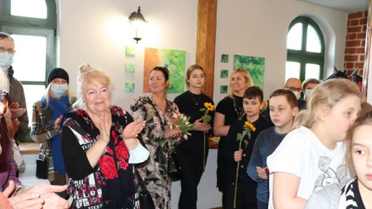 W galerii zebrało się liczne grono przyjaciół i członków rodziny artystki, na co dzień czynnie związanej z Galerią Brama. Nie zabrakło kwiatów i gratulacji.