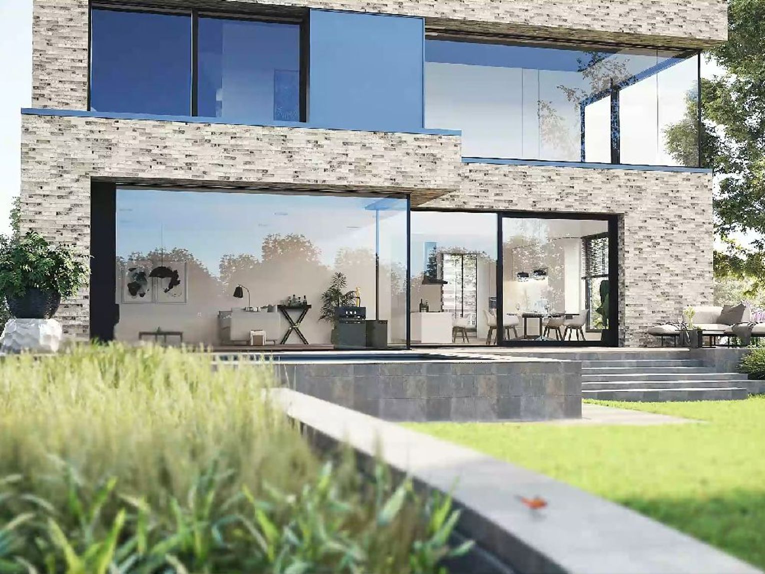 System AWISlide Panoramic od AWILUX umożliwia tworzenie dużych konstrukcji drzwi przesuwnych, przy równoczesnym zachowaniu ich płynności zamykania i otwierania. Imponująca konstrukcja oraz szerokie na 3.5 oraz wysokie na 3 metry skrzydło doskonale powiększa optycznie wnętrza, zapewniając przy tym znakomitą izolację termiczną oraz akustyczną, poprawiającą komfort przebywania w pomieszczeniu. Wąskie ramy, jak również sama lekkość przesuwania przy 500kg wagi jednego skrzydła, tworzą wrażenie płynnego przejścia między wnętrzem domu, a tarasem lub ogrodem.