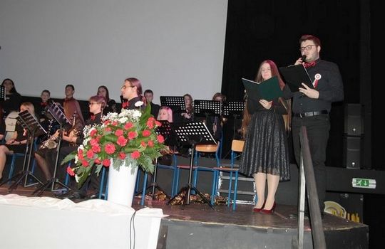 Na szczelnie wypełnionej widowni nie zabrakło samorządowców wraz z burmistrzem Andrzejem Szczygłem.