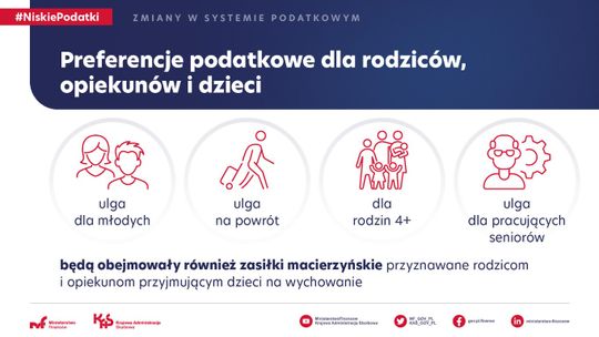 Uważamy też, że ulgi podatkowe (ulga dla młodych, na powrót, dla rodzin 4+, pracujących seniorów) powinny obejmować również zasiłki macierzyńskie przyznawane rodzicom i opiekunom przyjmującym dzieci na wychowanie. Dzięki temu od zasiłków nie byłoby podatku – do ustalonego w tych ulgach limitu.