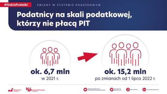 Na podstawie rozwiązań sprzed 2022 r. PIT nie płaciłoby niemal 6,7 mln podatników. Po zmianach podatku nie będzie płacić ponad dwa razy więcej osób, bo aż prawie 15,2 mln podatników.