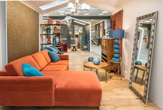 - W projekcie aranżacji dostępnej w Galerii Wnętrz Domar pomarańczową plamę narożnika Ibisco z salonu Corner Sofa równoważą piękne niebieskie lampy oraz dekoracje z salonu Kler, idealnie komponujące się z zaokrąglonymi kształtami narożnika i okrągłymi stolikami z salonu Livingroom. Tę obłość przełamuje piękna komoda Gaya z salon Livingroom, posiadajaca półki na wino z bogato zdobionym frontem. Aranżację uzupełnia lustro, także od tej samej marki. – wyjaśnia Sylwia Gulewicz-Wysocka.