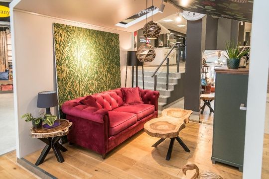 W przykładowym projekcie przygotowanym przez architektkę Galerii Wnętrz DOMAR masywna sofa Oxford została połączona z wyciętym z pnia stolikiem z salony Wood Interior, łagodzącą kolorystycznie komodą z firmy Rena w oliwkowym kolorze oraz zieloną tapetą w abstrakcyjny wzór. Aranżację dopełniają lampy Rayo i rośliny doniczkowe z salonu Parapet. Rośliny i doniczki oraz sympatyczny, drewniany flaming z salonu Wood Interior. Całość aranżacji ma wymiar klasyczny, jednak z „pazurem” w postaci nieregularnego stolika kawowego.