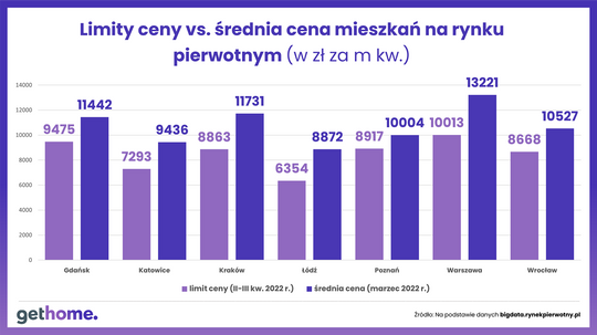 Ekspert GetHome.pl zwraca uwagę, że szczególnie w największych miastach, czyli tam, gdzie popyt na mieszkania jest największy, limity cenowe są dużo niższe od średniej cen ofertowych na rynku. Np. na rynku pierwotnym w Łodzi różnica wynosi ok. 40%.