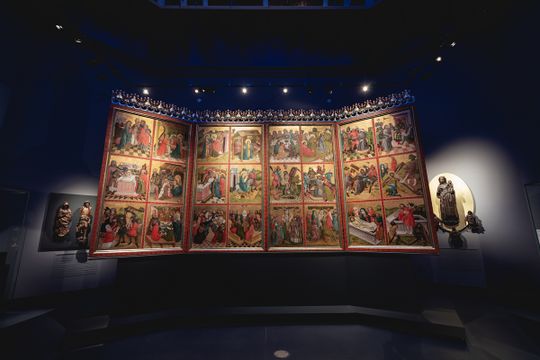 Znakomitym tłem dla tego wyjątkowego dzieła jest cykl obrazów poświęconych Marii i Chrystusowi na skrzydłach ołtarzowych poliptyku z kościoła św. Jana w Stargardzie, oddający szczególne dla średniowiecza zamiłowanie do intensywnych kolorów i blasku „niebiańskiego” złota.