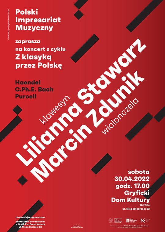W programie usłyszymy utwory G.F. Haendla, C.Ph.E. Bacha, H. Purcella, w wykonaniu Lilianny Stawarz (klawesyn) i Marcina Zdunika (wiolonczela).