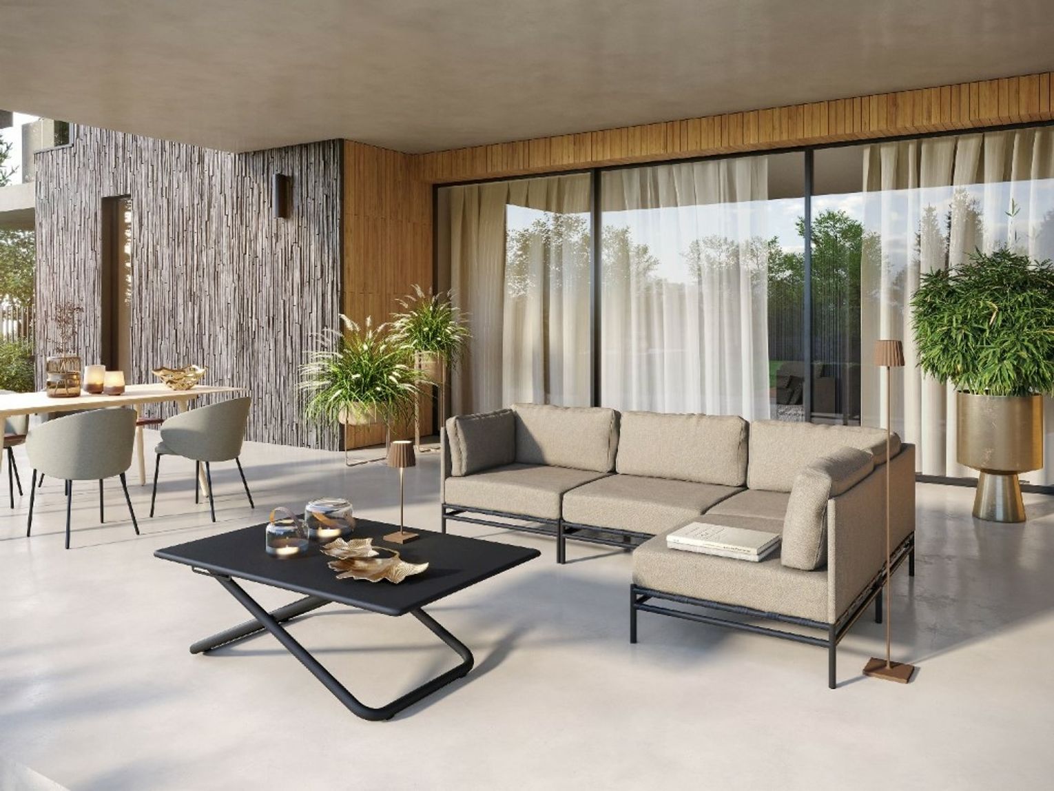 W tym sezonie kolory na tarasie odpowiadają temu, co widać ostatnio również i we wnętrzach - jesteśmy coraz bliżej natury, czyli kierujemy się ku beżom, brązom, naturalnej kolorystyce ziemi i wszelakim odcieniom grafitów i brązów.