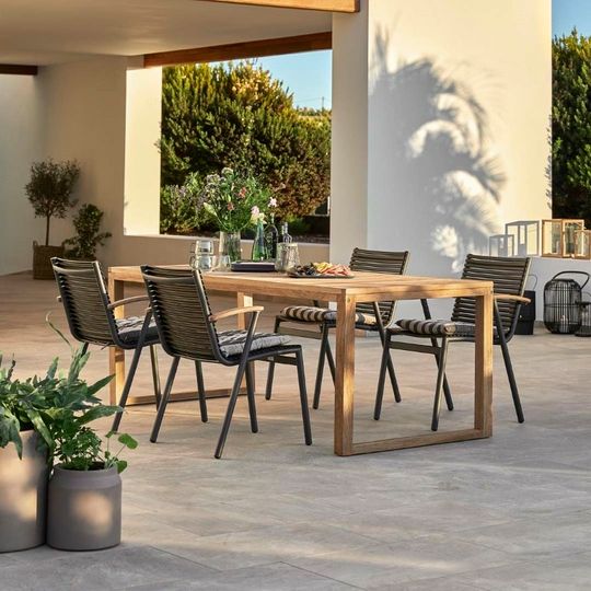 - Meble drewniane od wieków funkcjonują w przestrzeniach ogrodowych. Są one trudniejsze w utrzymaniu czystości i wymagają ciągłej uwagi jak, na przykład, podłogstąd należy je raz na rok olejować i chować ze względu na reakcję na wilgoć. Z drugiej strony jednak drewniane wyposażenie wspaniale komponuje się w aranżacjach tarasowych – zwłaszcza wtedy, gdy wykonane jest z drewna dębowego lub tekowego.