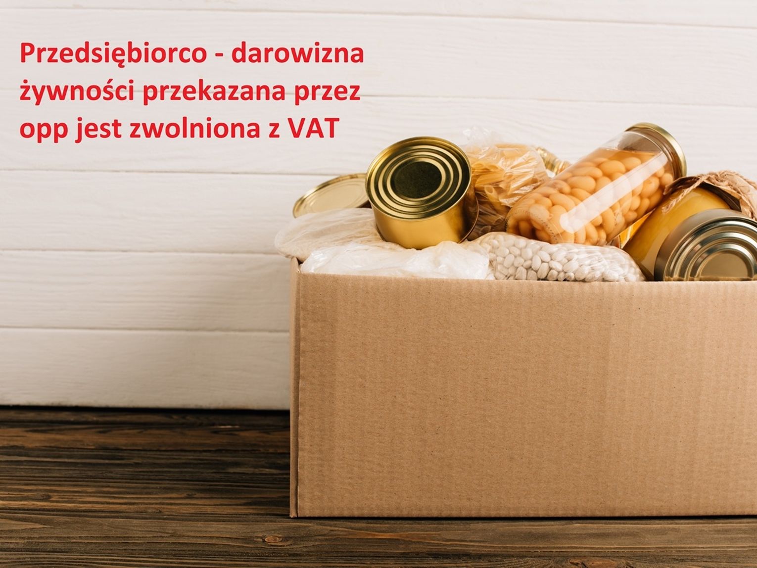 - Darowizna żywności w ramach działalności charytatywnej przedsiębiorcy jest zwolniona z VAT.