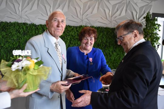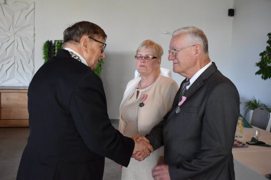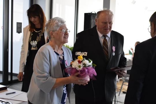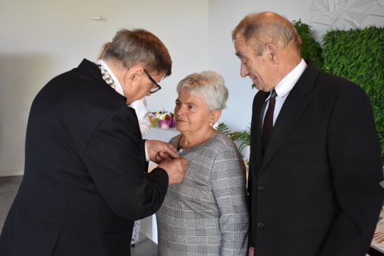 Podczas uroczystości, którą poprowadził Burmistrz Gryfic Andrzej Szczygieł oraz Kierownik Urzędu Stanu Cywilnego Justyna Wojda, Jubilaci zostali odznaczeni przez Prezydenta RP za Długoletnie Pożycie Małżeńskie. Aktu odznaczenia dokonał Burmistrz Gryfic i skierował do Szanownych Jubilatów słowa uznania i podziękowania za piękny przykład dla młodych pokoleń.
