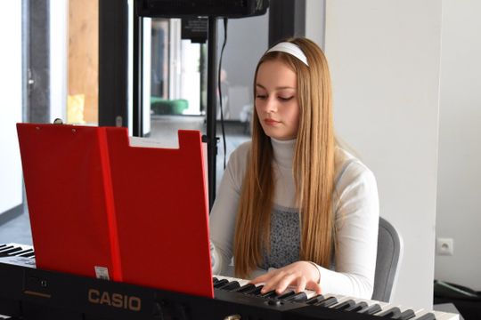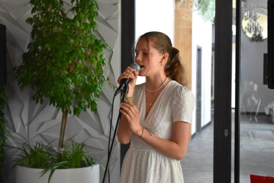 Ponadto, w trakcie jubileuszu nie mogło zabraknąć wspaniałego występu wokalnego dziewcząt z klasy Fortepianu i Wokalistyki Estradowej pod kierownictwem Agnieszki Nieszporek działającego w Gryfickim Domu Kultury, a także wspólnych rozmów przy słodkim poczęstunku.