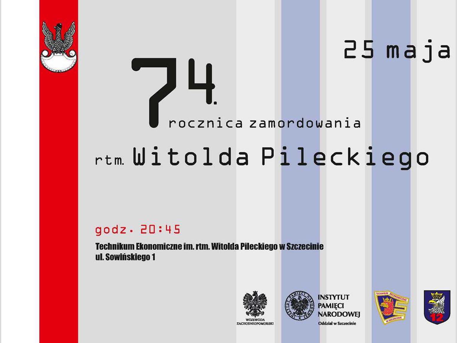 Główne uroczystości w 74. rocznicę zamordowania Witolda Pileckiego w Szczecinie odbędą się w Technikum Ekonomicznym im. Rotmistrza Pileckiego. Uroczystość będzie miała oprawę wojskową i zakończy się salwą honorową, w godzinę śmierci Rotmistrza. Wszystkich mieszkańców Szczecina, chcących oddać hołd rotmistrzowi Witoldowi Pileckiemu na uroczystości rozpoczynające się o 20:45 zaprasza Wojewoda Zachodniopomorski Zbigniew Bogucki, dyrektor Oddziału Instytutu Pamięci Narodowej w Szczecinie dr Paweł Skubisz, dyrektor Technikum Ekonomicznego im. Rotmistrza Pileckiego w Szczecinie Andrzej Kobylec oraz dowódca 12 Szczecińskiej Dywizji Zmechanizowanej gen. dyw. dyr. Dariusz Parylak.