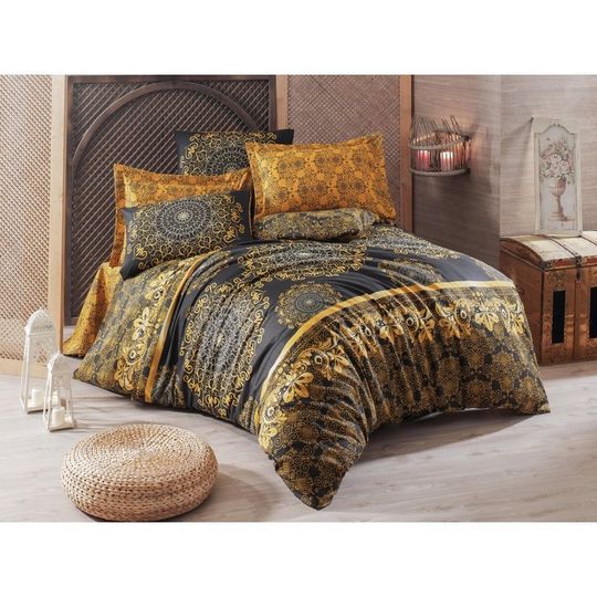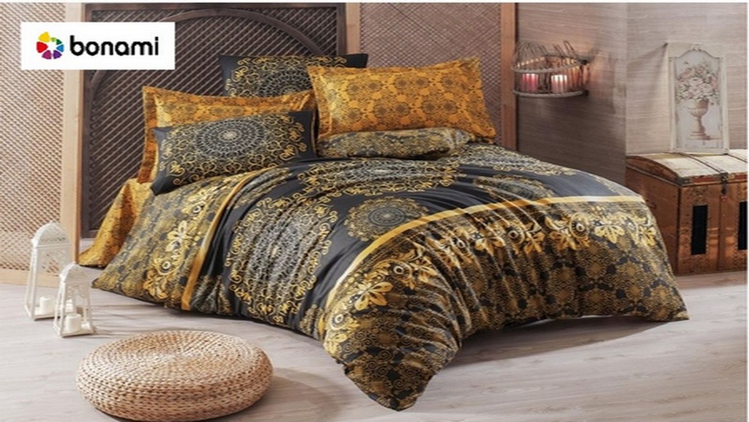 Złoto, mimo że definiuje luksus, sprawdzi się w każdym pomieszczeniu. Miłośnicy mocnych akcentów mogą udekorować złotymi elementami również swoją sypialnię. Z pewnością pomoże w tym dostępna w sklepie Bonami.pl pościel jednoosobowa z prześcieradłem Egyptian Magic, której wzór łączy w sobie kolor płynnego złota i idealnie kontrastujący z nim granat. Natomiast zasłony Apolena Celeste nie tylko dokładnie zaciemnią pokój na czas snu, ale również przeniosą nas do krainy wyobraźni.