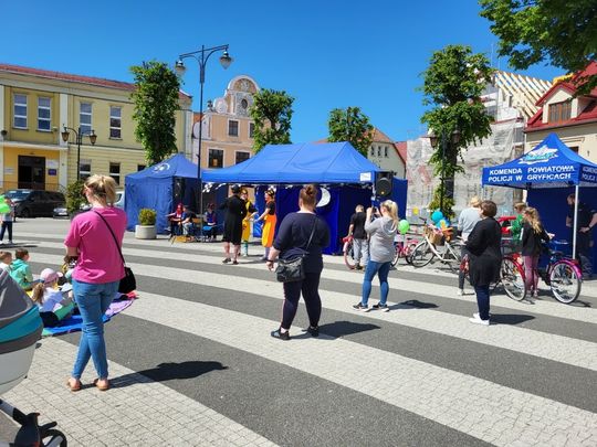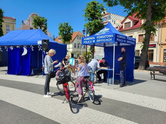 Policjanci z KPP w Gryficach zorganizowali znakowanie rowerów, jak zawsze dużym zainteresowaniem cieszyły się dmuchane zamki, można też było "postrzelać sobie na strzelnicy ASG.