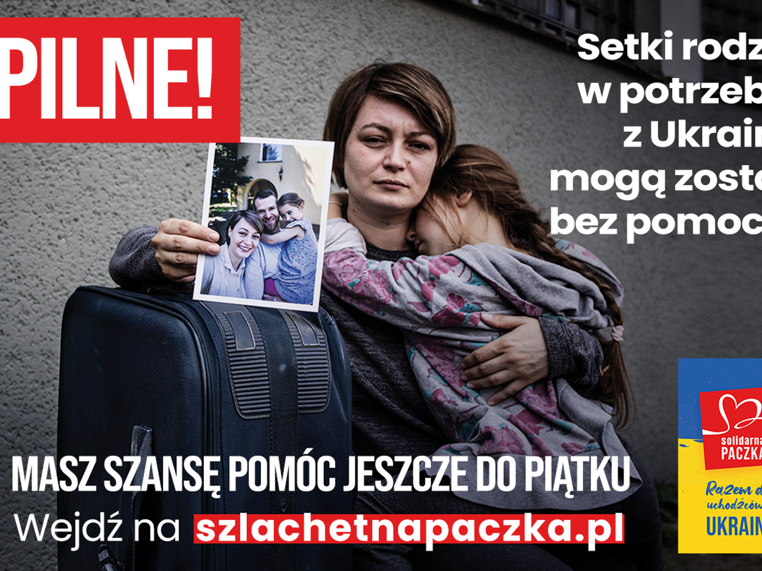 Rodziny, które uciekły przed wojną w Ukrainie nadal potrzebują naszego wsparcia. Zostało bardzo mało czasu. Do części z nich pomoc może nie dotrzeć. Nie możemy na to pozwolić. Masz szansę pomóc jeszcze do piątku 24 czerwca. Wejdź na www.szlachetnapaczka.pl i wybierz rodzinę, dla której przygotujesz pomoc.