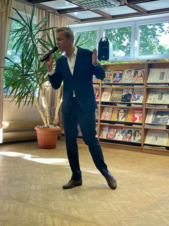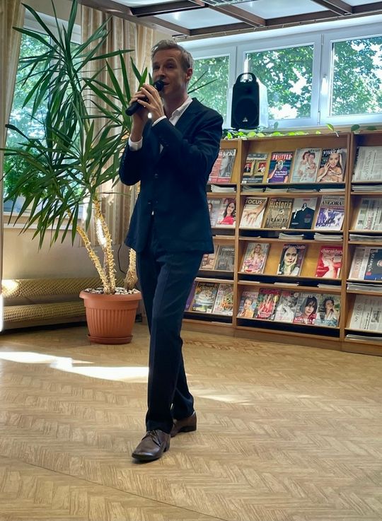 Czytelnia biblioteki wypełniona była po brzegi. Wspaniały kontakt Pana Artura z publicznością sprawił, że nie było mowy o dystansie między artystą a publicznością.