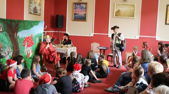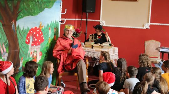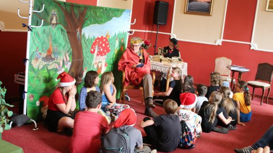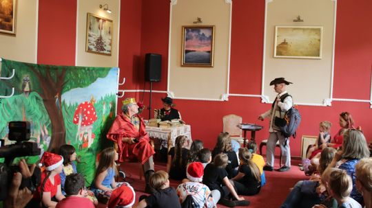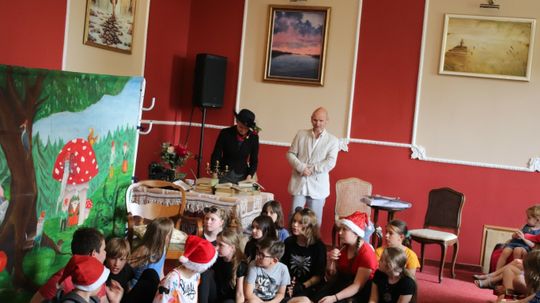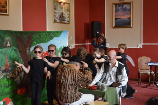 Potem wystąpili rewelacyjni aktorzy szczecińskiego teatru Teatr Gwitajcie. Przez pałacową scenę przewijały się krasnoludki i mali strażacy którzy wraz z e Stefkiem Burczymuchą szukali Pani Wiosny, wszystko pod inspiracją dostojnej pani Marii Konopnickiej.
