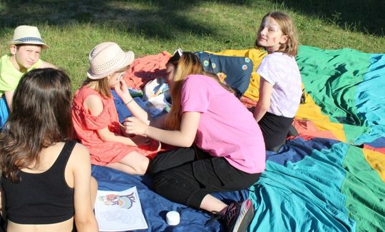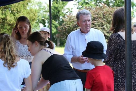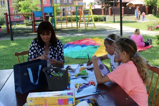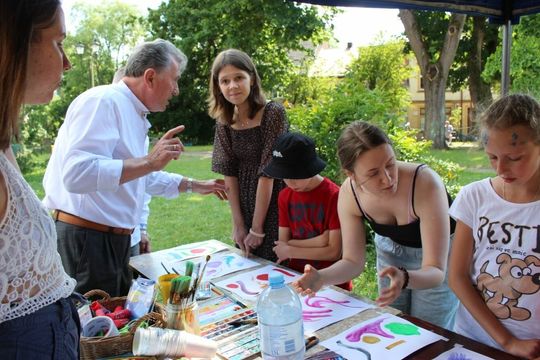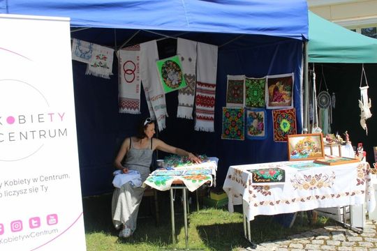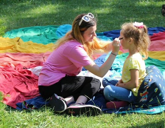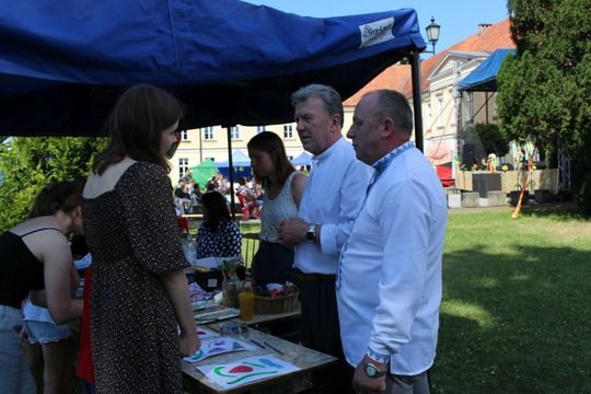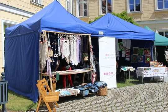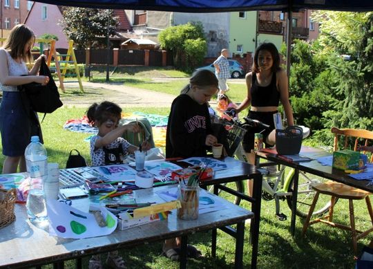 Na dziedzińcu trwały warsztaty artystyczne, malowanie buziaków i pokazy rzemiosła artystycznego,