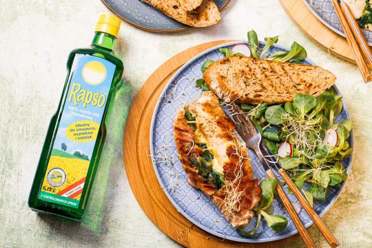 - Kieszonki podawaj z sałatą skropioną olejem Rapso i sokiem z cytryny oraz z grillowanym pieczywem.