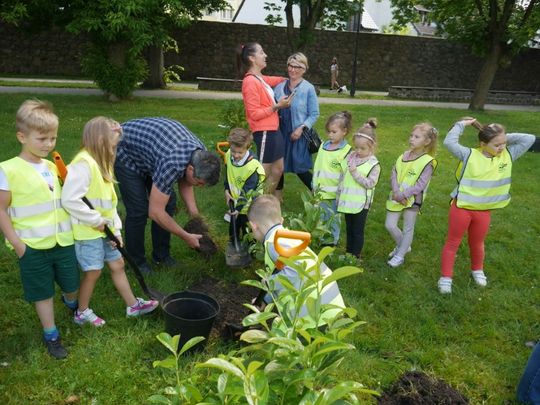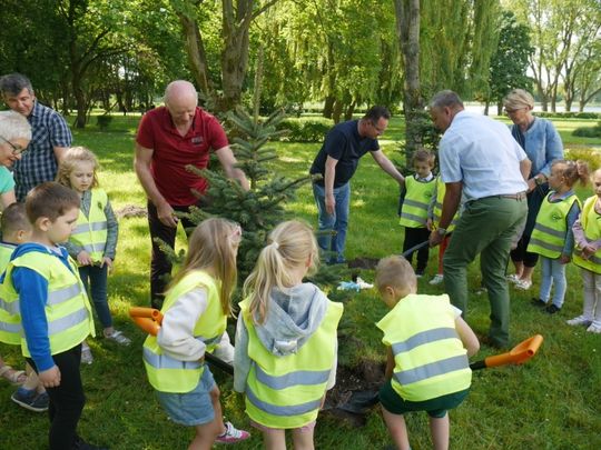 W trakcie sadzenia nad jeziorem z udziałem burmistrza i mocno zaangażowały się w niej dzieci z przedszkoli nr 3 i 4.