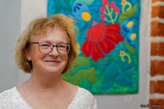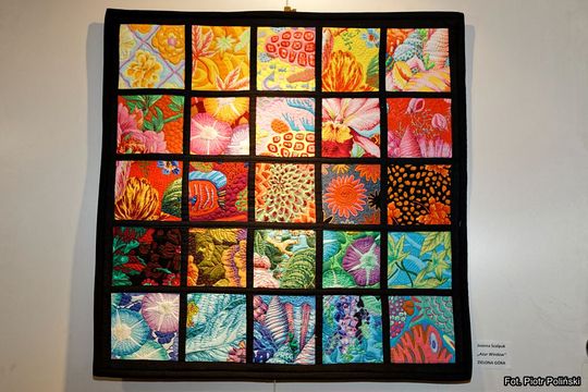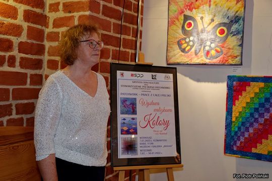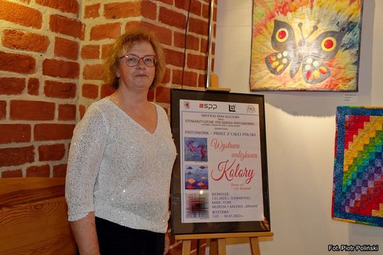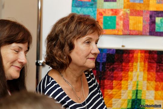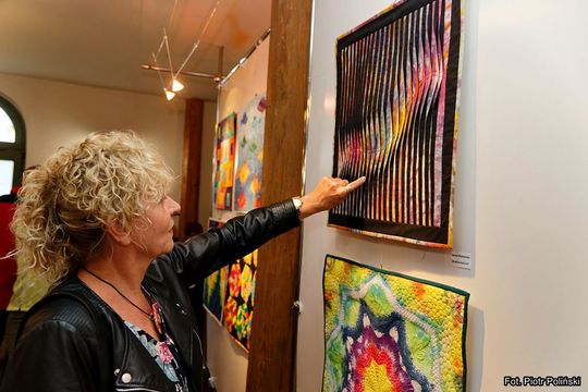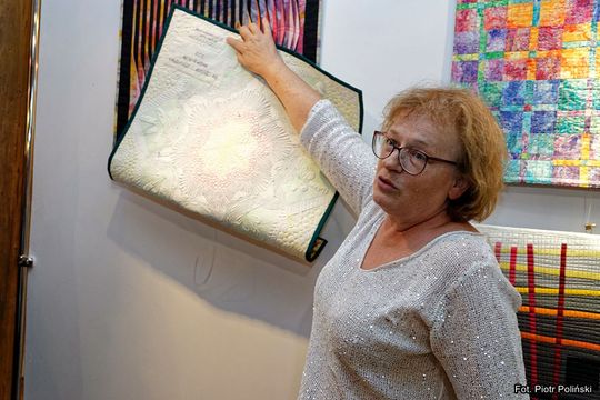 Z tą niezwykle trudną sztuką krawiecką jaką jest patchwork, z jego historią, z procesem powstawania i różnorodnością technik zapoznała uczestników wernisażu Jolanta Gliwa, gryficka guilterka, dzięki której wystawa mogła zagościć w Gryficach.