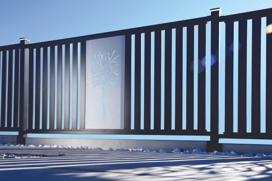 Minimalistyczna stylistyka Nowoczesnego Ogrodzenia Frontowego Kwarc ma swój niezaprzeczalny urok i idealnie sprawdzi się w nowocześnie zaaranżowanej przestrzeni. Jeśli jednak zależy nam na tym, aby nadać ogrodzeniu rys oryginalności i uczynić je bardziej dekoracyjnym, możemy połączyć nowy model z oferty Plast-Met z ozdobnym Brytem. To specjalne blachy, które można wkomponować w przęsło, furtkę i bramę, z ażurowym wzorem wycinanym laserowo. Nowe rozwiązanie jest niezwykle efektowne i pozwala wyróżnić posesję na tle innych. W wyrazisty sposób rozbija jednorodny rytm równomiernie rozmieszczonych profili i przykuwa wzrok przechodniów. Dzięki promieniom wpadającym przez otwory, w pobliżu ogrodzenia tworzy się intrygująca gra światła i cienia, która zmienia się w zależności od nasłonecznienia i pory dnia. W ofercie firmy Plast-Met dostępne są różnorodne wzory od geometrycznych rombów do nawiązujących do natury drzew i traw. Oprócz standardowych wzorów z bazy producenta, zamówić można dowolny, projektowany indywidualnie ozdobny detal. Dzięki temu na blaszanym panelu wycięte może być np. logo firmy lub wybrany przez inwestora kształt.
