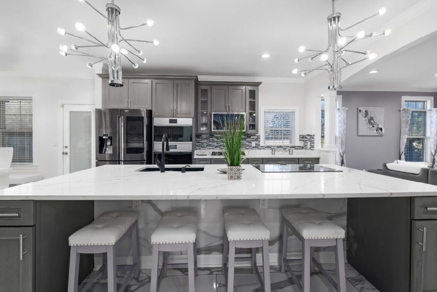 Najczęściej wybieranym kamieniem naturalnym jest marmur, cechujący się najlepszymi parametrami użytkowymi i wykorzystywany jako baza do płyt konglomeratowych. Co ciekawe, w przypadku tych drugich mamy możliwość łączenia ich z różnymi barwnikami i zdobieniami. Bardzo popularny w wykończeniu wnętrz stał się ostatnio brokat, który stosuje się nie tylko na powierzchni ścian, ale i jako zdobienie blatów wykonanych w konglomeratu. Poza ozdobami, dodatkowym atutem wyboru konglomeratu jest możliwość stworzenia blatów czy innych elementów w kuchni zupełnie bez spoin.