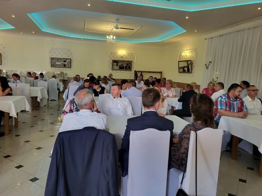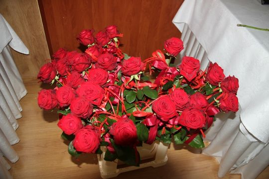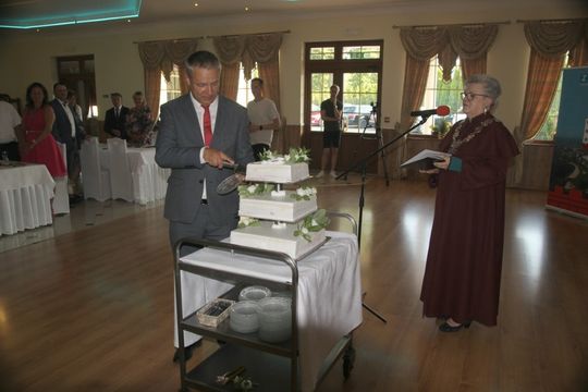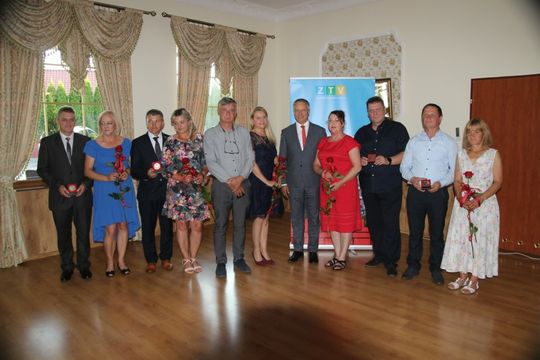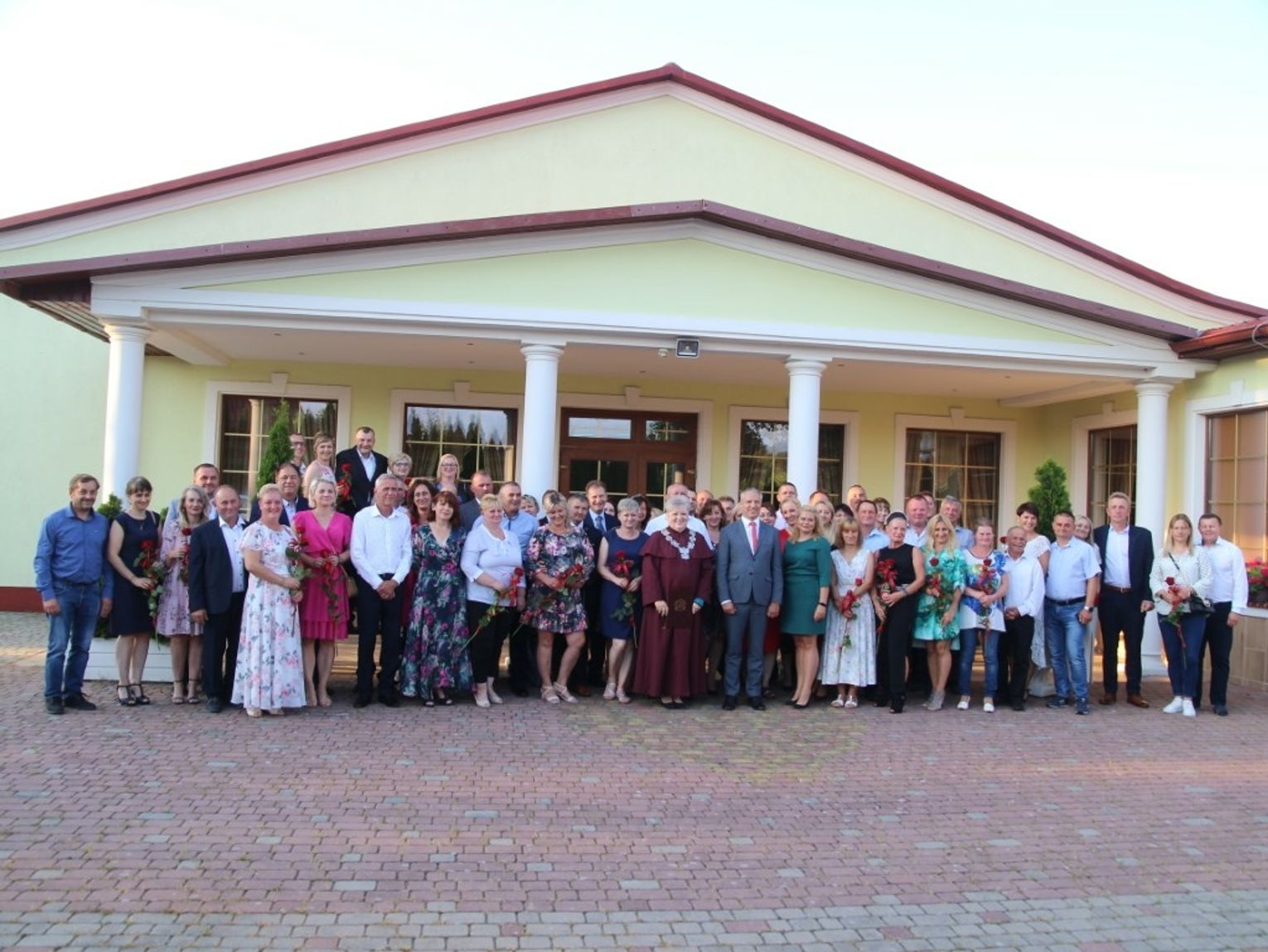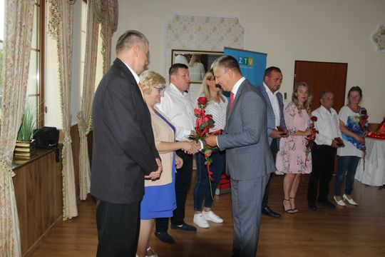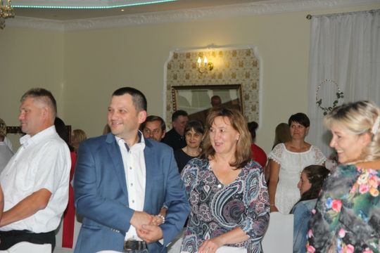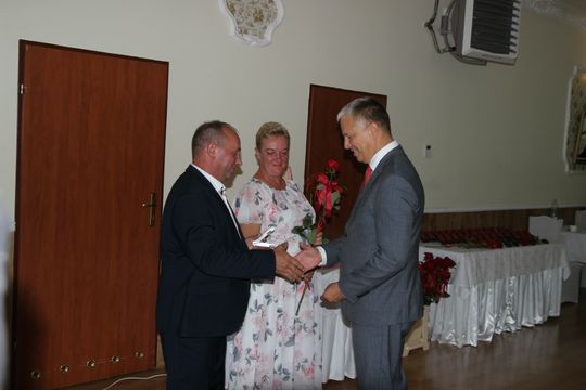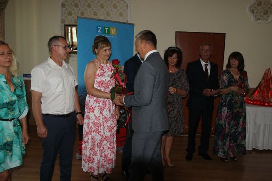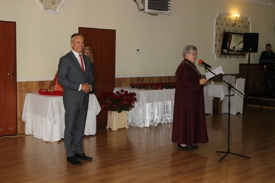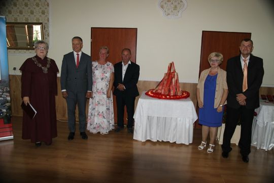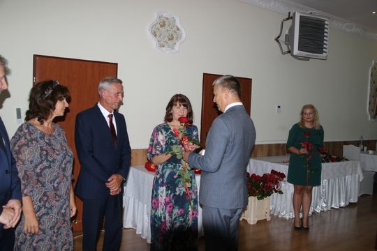 Przybyłych gości przywitała kierownik Urzędu Stanu Cywilnego Mariola Tyrcha, a serdeczne życzenia kolejnych lat w zdrowiu, szczęściu i oczywiście miłości przekazał burmistrz Robert Czapla.
