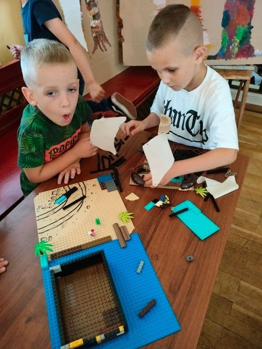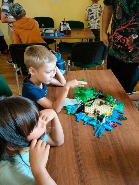 Dzieci z pełnym entuzjazmem, kreatywnością i ogromną pracowitością , w ciągu trzech dni zbudowały światy: rycerski, piracki i konstruowały własne projekty.