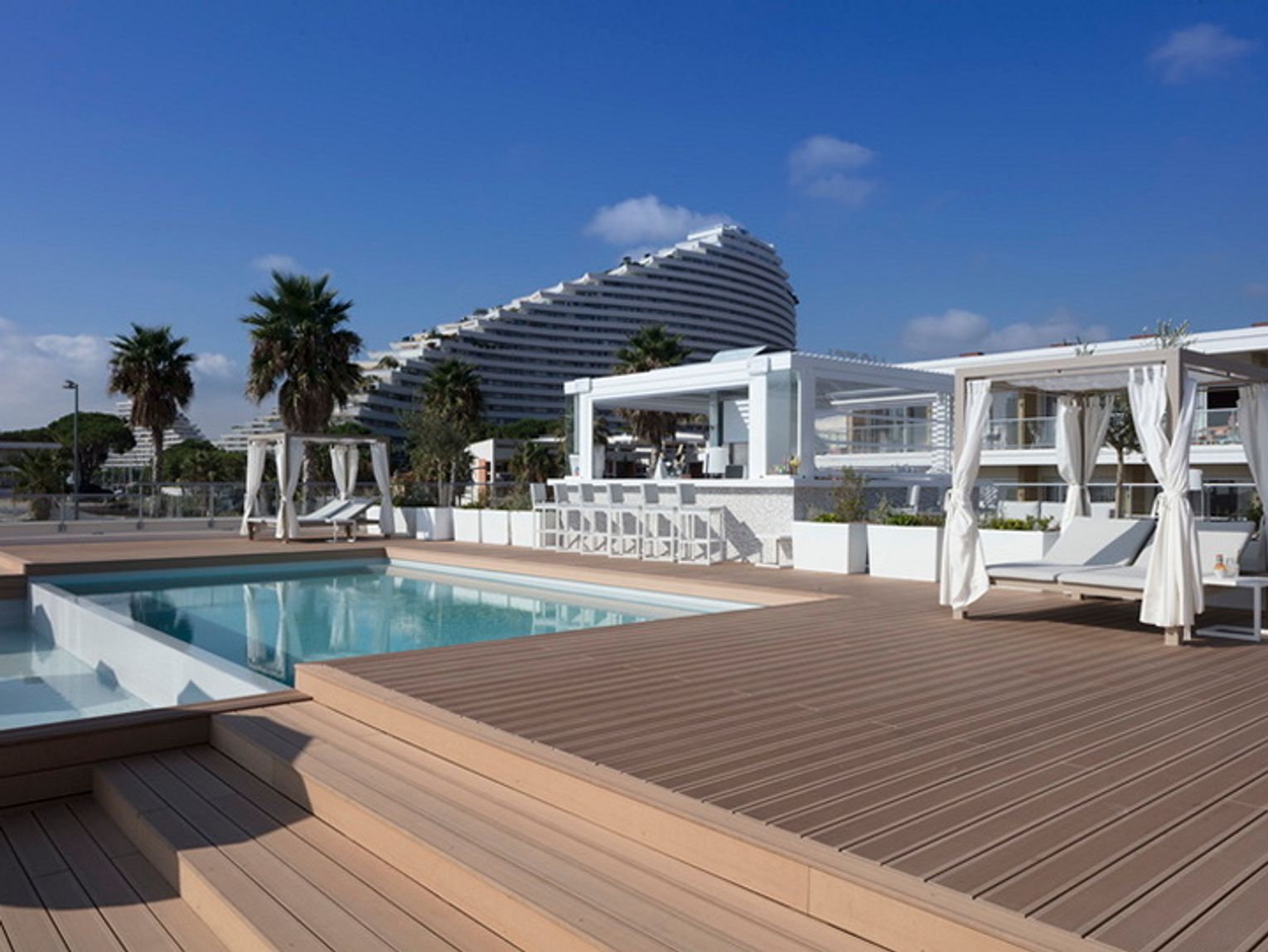 - Termososna to drewno, które nie boi się wilgoci. W procesie termowania żywica uległa krystalizacji. W wyniku tego drewno zostało pozbawione żywicznych wycieków — charakterystycznych dla surowej sosny. Także nie musimy się obawiać lepkich plam na stroju kąpielowym. Otrzymujemy piękne deski o biologicznej odporności niemalże tropikalnego drewna egzotycznego, jednak pochodzące z europejskich obszarów. Deski z termososny są stabilne wymiarowo i nie wymagają specjalistycznej konserwacji. Na brzeg basenu polecam wariant ryflowany, który zapewnia odpływ wody i jest mniej śliski — wyjaśnia Darina Lazarova z JAF Polska i dodaje: