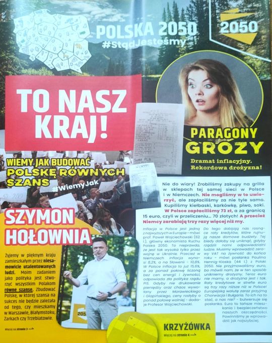 Od weekendu na ulicach województwa zachodniopomorskiego pojawiają się nasi wolontariusze i rozdają gazetkę wakacyjną pt. „To Nasz Kraj”, przygotowaną przez Stowarzyszenie Polska 2050. Tematem naczelnym publikacji jest inflacja.