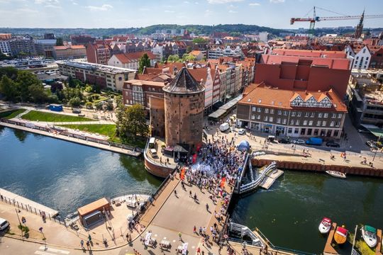 Uroczyste otwarcie nastąpiło 3. sierpnia o godzinie 14.00. Wzięli w nim udział Aleksanda Dulkiewicz, Prezydent Miasta Gdańska, Piotr Grzelak, Zastępca Prezydenta Miasta Gdańska ds. Inwestycji, Wojciech Ciurzyński, prezes zarządu Multibud Investment oraz panowie Olivier Thiel i Rudi op't Roodt ze spółki Immobel. Obiekt odzyskał swoją dawną funkcję mostu zwodzonego, co pozwoli otworzyć szlaki wodne na Motławie dla jachtów i niewielkich jednostek pływających. Równolegle ze zwodzoną przeprawą powstała nowa marina na 60 miejsc.
