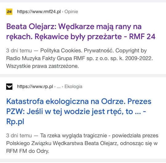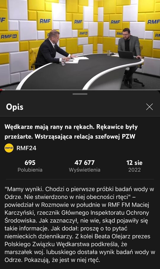 - "marszałek woj. lubuskiego dostała wynik badań wody w Odrze. Pokazują, że jest w niej rtęć"