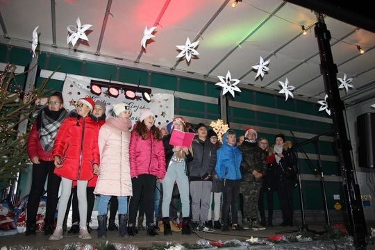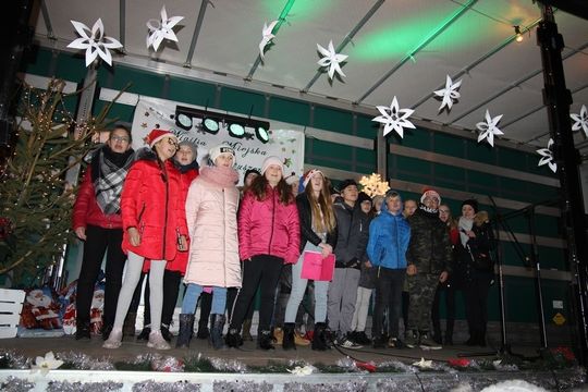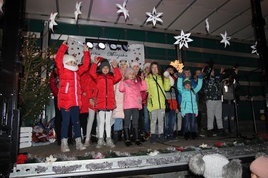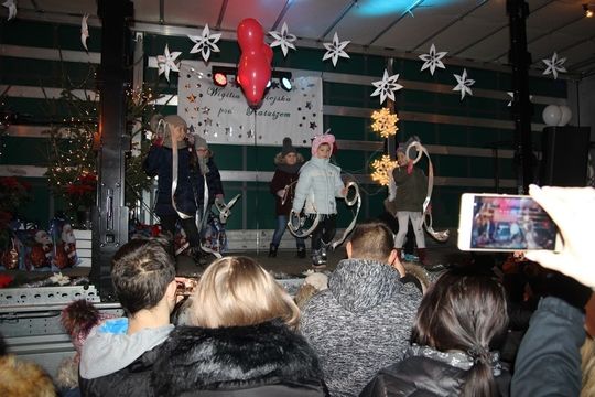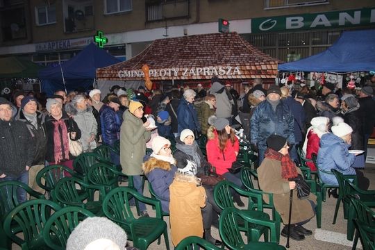 Już od godziny 12 tej wzdłuż ulicy Jedności Narodowej "rozstawiły się' stoiska Bożonarodzeniowego Kiermaszu, od godziny 15.00 z udziałem burmistrza Radosława Mackiewicza, przewodniczącej Rady Miejskiej Iwony Taśmińskiej i ks. proboszcza Ryszarda Szymanika rozpoczęło się wspólne kolędowanie a na scenie zaprezentowali się uczniowie szkół z gminy Płoty oraz dzieci z zespołu z MGOKiS.