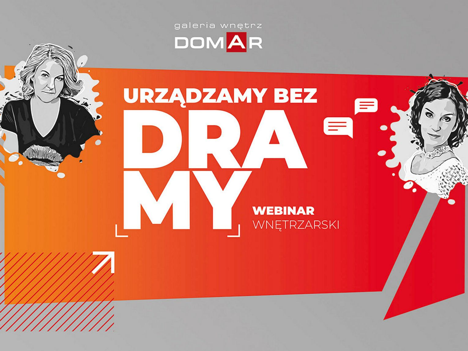 „Urządzamy bez Dramy” to inicjatywa, mająca na celu pomoc remontującym i wyposażającym wnętrza, a także pozwalająca uporządkować wiedzę na temat stylów i trendów . Rozpoczynający się 13 września cykl opracowano na podstawie najczęstszych zapytań klientów, a program w ciekawy i angażujący sposób przedstawi wnętrzarskie problemy oraz ich rozwiązania. Przeplatany porywającymi anegdotami i historiami, umożliwi lepsze zrozumienie wnętrzarskich niuansów - począwszy od łączenia kolorów, po praktyczne podejście do tworzenia aranżacji, od wyboru materiałów – po zakończony sukcesem remont. DOMAR-owe specjalistki oczarują uczestników wiedzą, humorem oraz trafnością rad, a lekka atmosfera webinariów prowadzonych w pięknych salonach Galerii Wnętrz DOMAR, stworzy przyjazną platformę edukacyjną dla poszukujących konkretnych rozwiązań i inspiracji do stworzenia idealnej, domowej przestrzeni.
