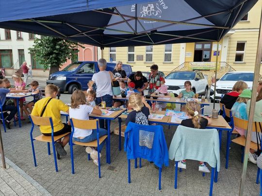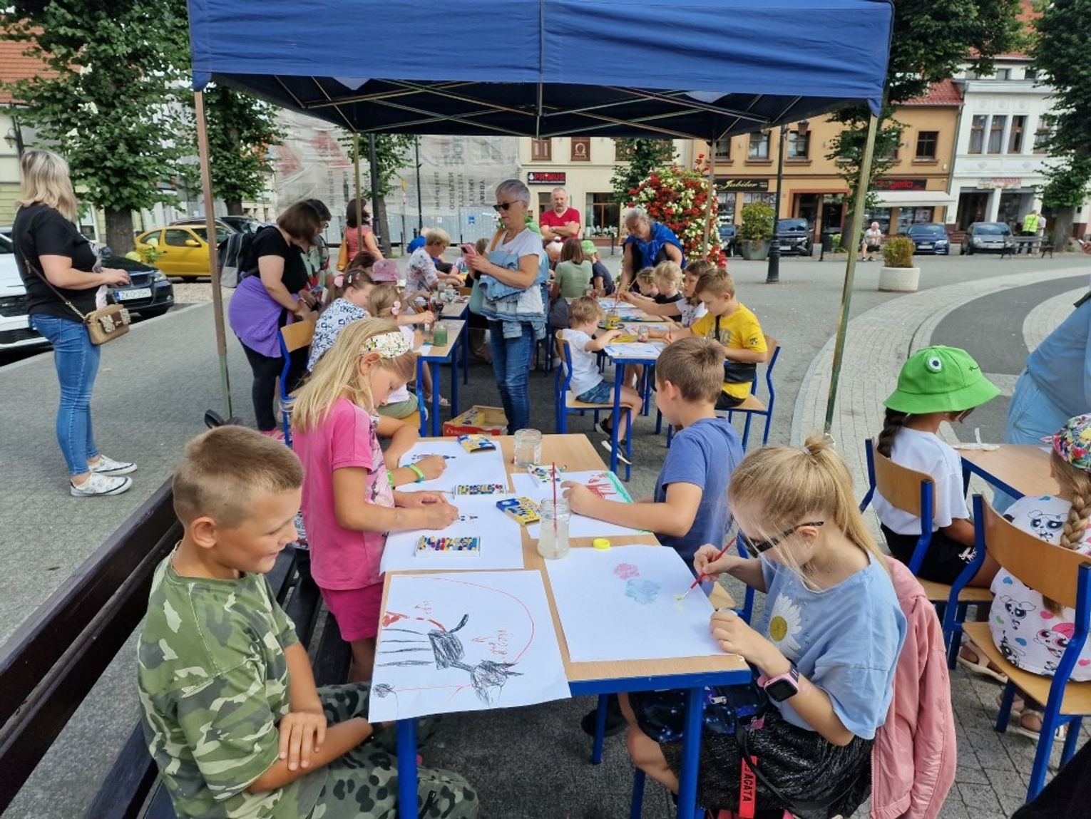 Na zdjęciach: Warsztaty plastyczne dla dzieci na Placu Zwycięstwa w ramach Letniej Akademii Sztuk Plastycznych.