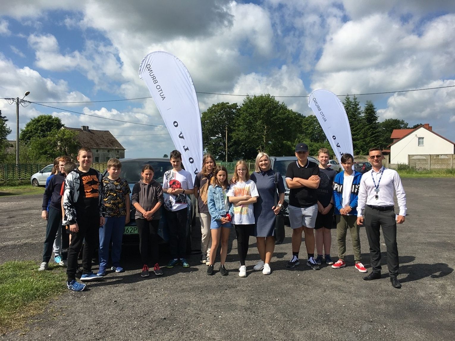 Na zdjęciu Gryficki Klaster Energii wspólnie z salonem Volvo i Gminą Brojce zorganizowały zajęcia z elektromobilności dla uczniów szkoły.