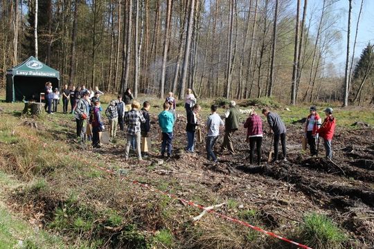W czwartek 19 kwietnia na jednym ze zrębów spotykamy grupę uczniów klas szóstych ze Szkoły Podstawowej nr 3 w Gryficach którzy postanowili wesprzeć leśników w tej pożytecznej akcji. Do zasadzenia przygotowano teren o powierzchni 10 arów na którym młodzież posadzi około 1000 rocznych sadzonek sosny. Udział w akcji sadzenia lasu to nie tylko fizyczna praca ale też zajęcia z edukacji leśnej. Pracownicy Nadleśnictwa przygotowali dla młodzieży materiały edukacyjne, informacje o lesie i zasadach prawidłowego sadzenia drzewek. Na zakończenie też ognisko i pieczone kiełbaski dla regeneracji sił po ciężkiej i pożytecznej pracy.