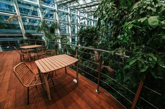 Olivia Garden jest efektem nowatorskiego myślenia o charakterze miejsca pracy, w którym bliskość natury pozytywnie wpływa na samopoczucie i efektywność pracy. Projekt powstał w odpowiedzi na zapotrzebowanie rezydentów centrum biznesowego oraz z myślą o mieszkańcach Trójmiasta, dla których jest to kolejna atrakcja i propozycja spędzenia czasu wolnego. Olivia Garden została podzielona na 4 strefy, aby oferować przestrzeń dla różnych aktywności. W cieniu wkomponowanej w rozległą antresolę czarnej oliwki Bucida Buceras znajduje się bar w stylu Tiki, serwujący świeże koktajle i lekkie dania kuchni orientalnej. Ogród doskonale sprawdza się jako przestrzeń do organizacji spotkań towarzyskich i biznesowych, samodzielnej pracy i odpoczynku oraz organizacji wykładów, warsztatów czy koncertów, gdyż znajduje się w nim amfiteatr, schowane wśród gęstej roślinności stoliki oraz komfortowe miejsca relaksu.