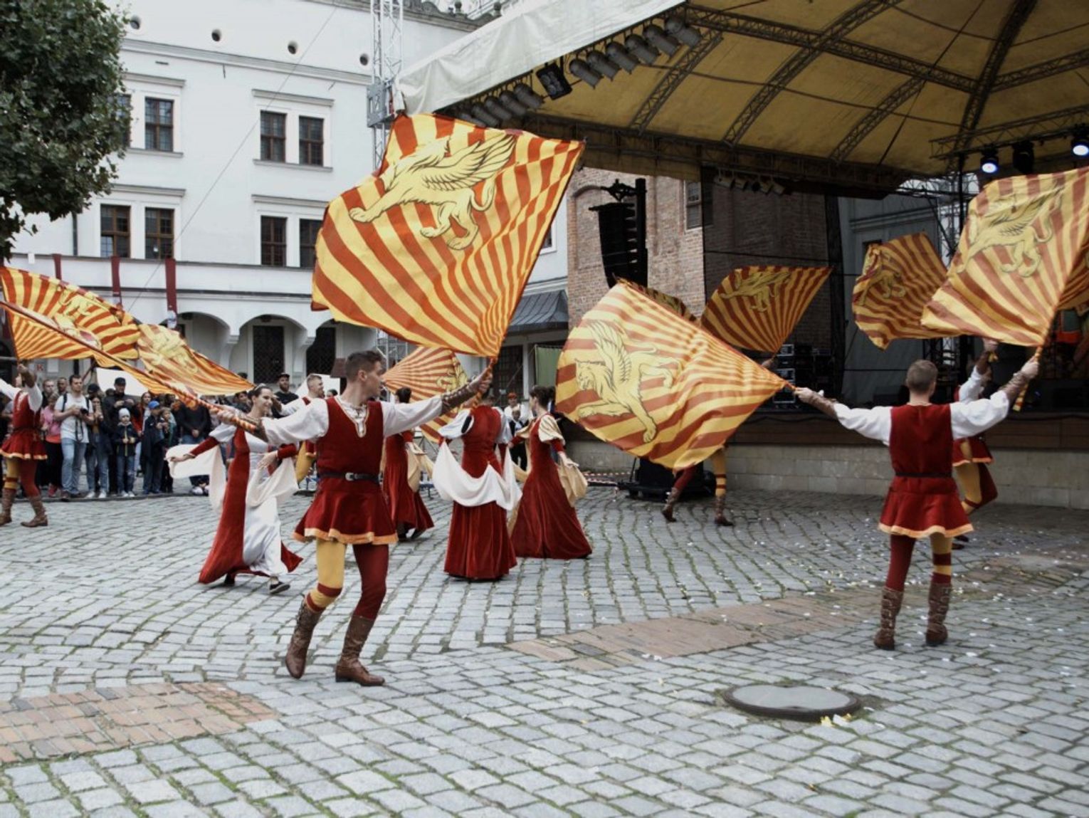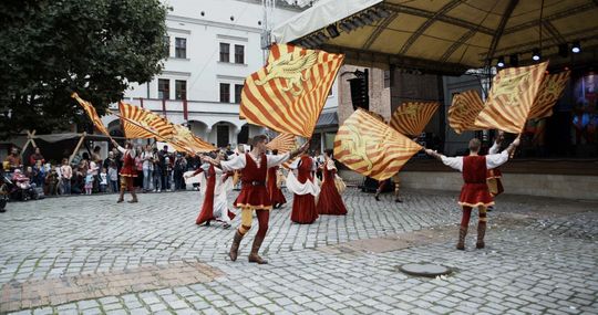13:45 - Gwardia Gryfa – pokaz żonglowania chorągwiami i tańców dworskich